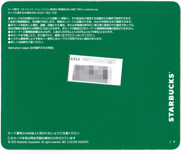 スターバックス コーヒー ジャパン30周年を記念して発行された、5種類の「THE スター フラペチーノ」ミニカードの内の1枚。